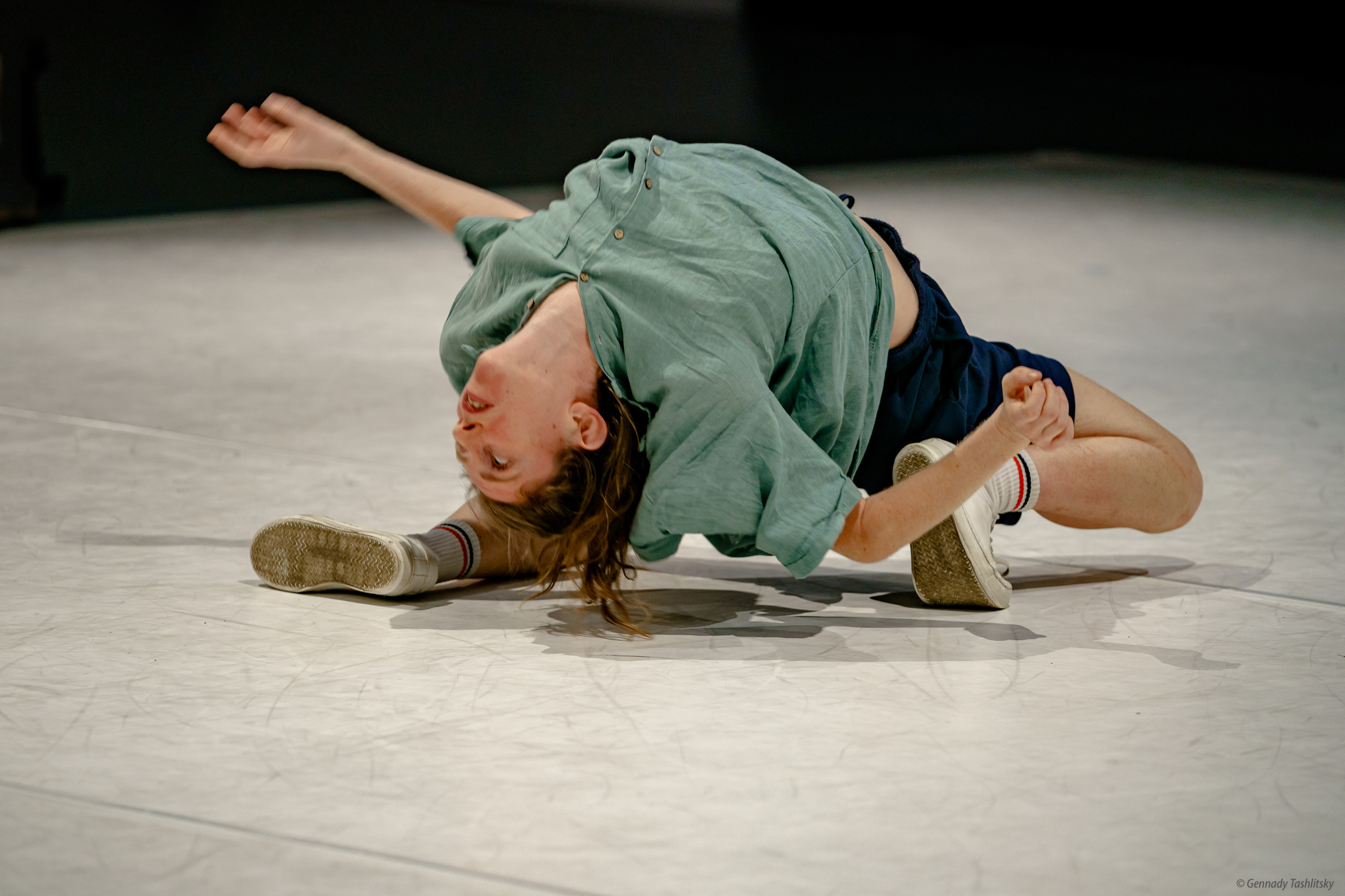 Another dancer that easily kept the audience on their toes was Roni Chadash with her solo And All That Body, a new chapter in her ongoing quest to decipher the mystery of her own body. Chadash seems to look for a way to distance herself from her body, in order to better understand it. In the meantime, she developed an original somatic language, using her impressive flexibility to activate and manipulate her own performing moves, which she doesn’t seem to enjoy much yet. But we do. Her stage persona is inquisitive and innocent, and her kinesthetic choices seem to surprise her, like they surprised and delighted us' Jerusalem Post