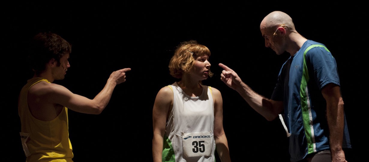 “the power of the piece is the intimate frame through which we experienced the three performers, the breakdown of their world, and the erosion of their relationships.. Marathon succeeds because its form is so immediate, while revealing something deeply existential. Marathon is not a destination, it’s a point of departure: it’s an uncomfortable launching pad without answers, and suggests none are coming soon.. It is a performance that uses the body and space as its medium. It confronts the audience with its intimacy and violence.. Marathon is as much about us as it is about the three running the 8 kilometers.” (Ruth Madoc-Jones – Theatre, politics, feminism.. Canada)