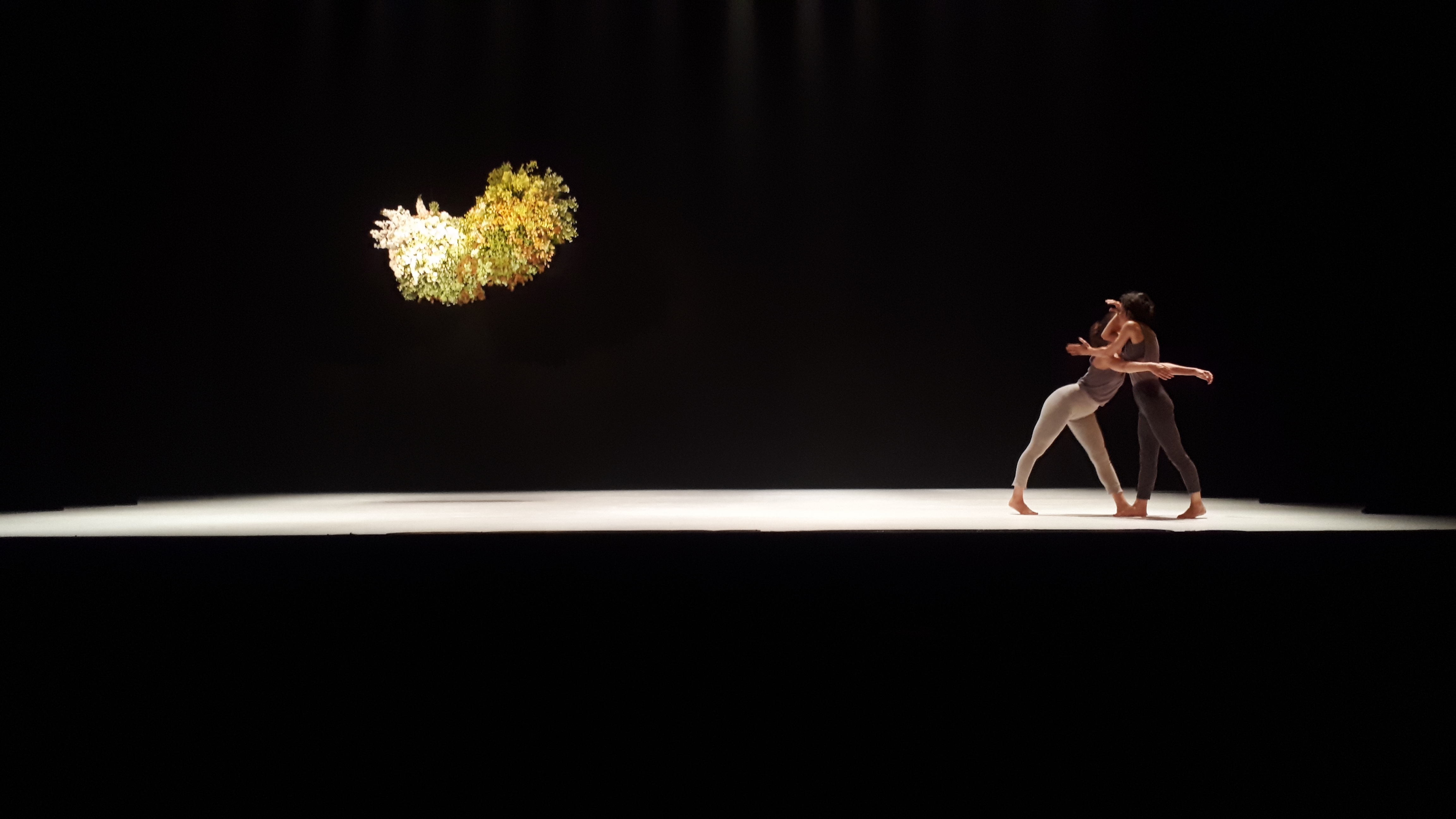 לצד תַּלְכִּיד יפהפה של צמחייה מסוגים שונים ומעין טחב, המשתלשל מהתקרה, בעיצובו של זוהר שואף, יוצרות בק והרקדנית מיכל סייפן אינטרקציה פיזית של תרכובת אורגנית כמערכת בעלת הגיון פנימי. (ענת זכריה).