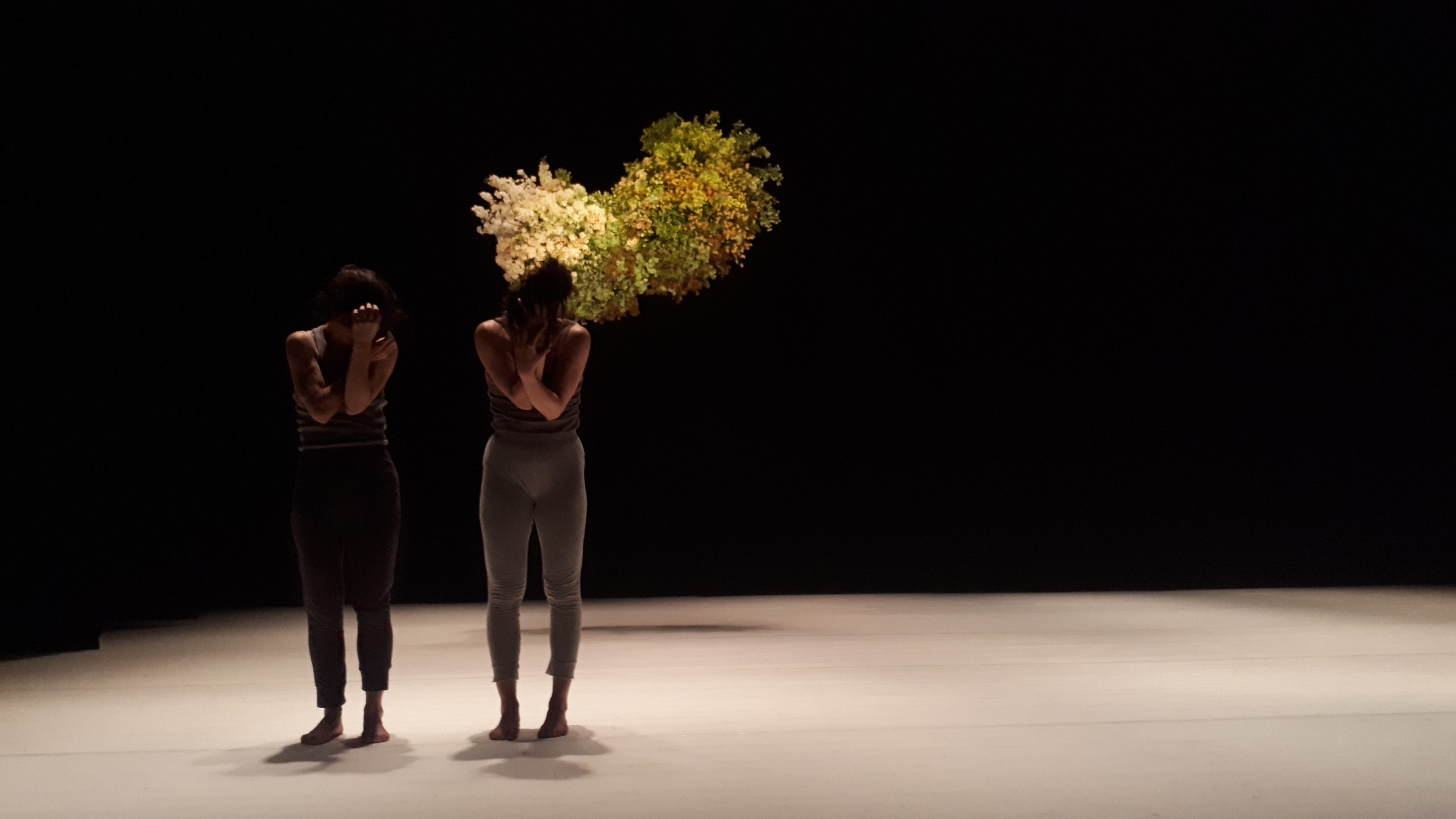 בק וסייפן לבושות בבגדי טריקו אפורים, בגדי עבודה בסטודיו שרקדנים אוהבים ללבוש. הרצון להצטנע במרחב, להעדיף פונקציונליות על סגנון-יתר של שתי המבצעות, עומד בניגוד גמור למעין ענן גדול שתלוי מעל ראשיהם ומורכב מחומרים המדמים צמחיה עשירה בעלת צבעוניות זוהרת שקשה להתעלם ממנו. את האובייקט עיצב זוהר שואף בכישרון.