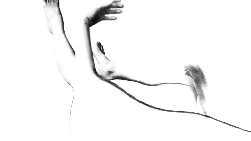 קו דק נמתח בין שתי כפות ידיים מסמן את מוטת הזרועות, את החיבור של הקצוות למרכז. מתוך הקו נולד גוף ומהגוף נולדת תנועה.