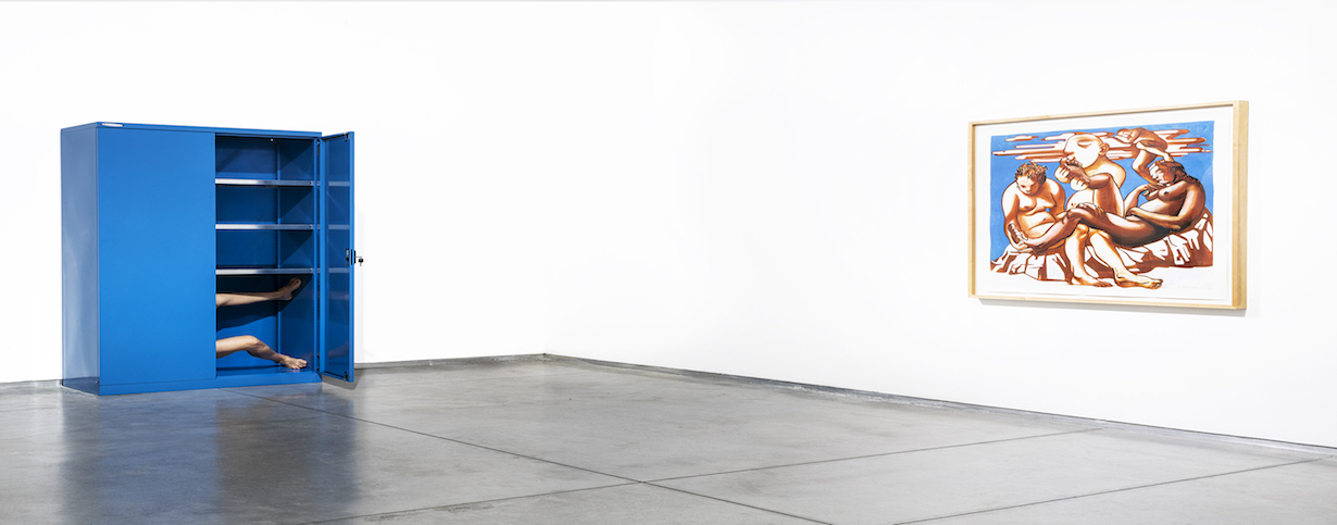 איך אפשר להעביר חוויה מרגשת, ייחודית, חד פעמית כמעט או בעצם חד פעמית (הרי המיצג, גם אם הוא מתרחש במעין לופ, לעולם לא באמת יחזור על עצמו כשמדובר בתנועה אנושית)? במשך שעתיים התרחש המיצג בתוך ארונית מתכת כחולה. דלת אחת של הארונית היתה פתוחה ודרכה נגלו חלקי גוף, אף פעם לא שלם, בכל פעם חלק אחר מופיע ונעלם ולא תמיד ברור באיזה חלק מדובר. לפעמים זה נראה כמו נוף מופשט ולעתים כל כך ברור עד כדי מבוכה: השדיים, שיער הערווה, העכוז, הוגינה. עור לעתים מתוח לעתים עם קמטים. שיער ארוך שדבק לגב וברקע שריקה חרישית שלא ברור מה מקורה עד הרגע שבו נגלות הפנים. נחירי האף נסתמו באטמי אוזניים והשאיפה והנשיפה מתבצעות באמצעות משרוקית שנמצאת בפה במשך המיצג כולו. מלווה אותו בציפצוף חרישי.״