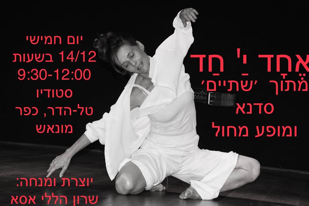 השניה: פיזית-תודעתית. נתבונן בנוכחות שלנו בזמן תנועה ומופע, בתכני התודעה ובנשימה.