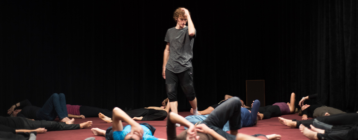 שיעור מחול מודרני/ עכשווי הכולל שיחה, חימום קבוצתי וקומבינציה.